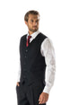 - Pantalone uomo nero in poliestere, stesso bagno di tessuto della giacca, tre tasche, passacintura, modello classico.