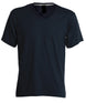 T-shirt collo a V manica corta, colletto in costina misto spandex da 1,5 cm con cucitura ribatutta sul davanti, nastro di rinforzo da spalla a spalla, struttura tubolare.