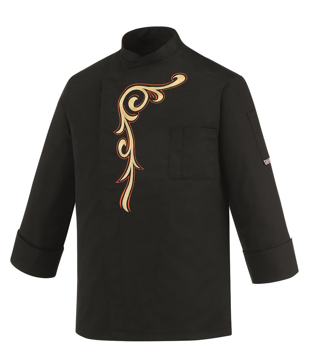Giacca cuoco monopetto nera con ricamo modello custom.